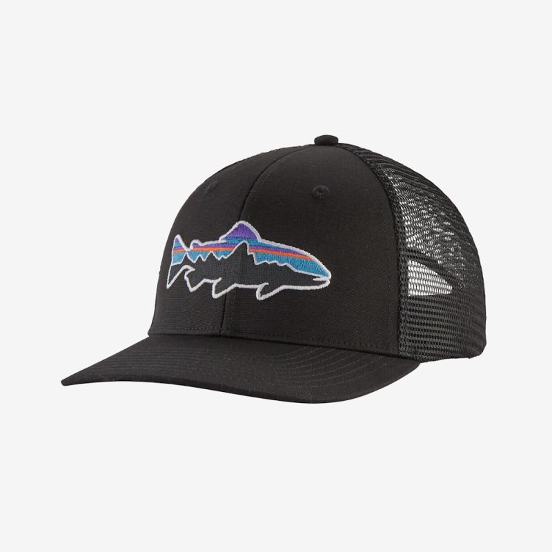Casquette brodée au logo à la truite de Patagonia. Montage préformé en six panneaux. Visière flexible et incurvée. Une attache réglable à l’arrière de la casquette permet d’ajuster le serrage pour éviter de la perdre en action de pêche.