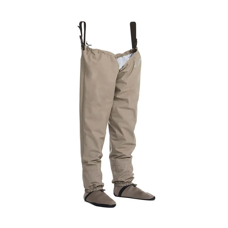 Les cuissardes waders KOSKI HIPWADER sont confectionnées dans un tissu 4 couches imperméable et respirant. Les guêtres sont fabriquées dans le même matériau que les waders et sont équipées d'un crochet pour la fixation à la chaussure de wading. Elles sont dotées de chaussons néoprène coupe anatomique droite/gauche et de bretelles réglables pour fixation à la ceinture