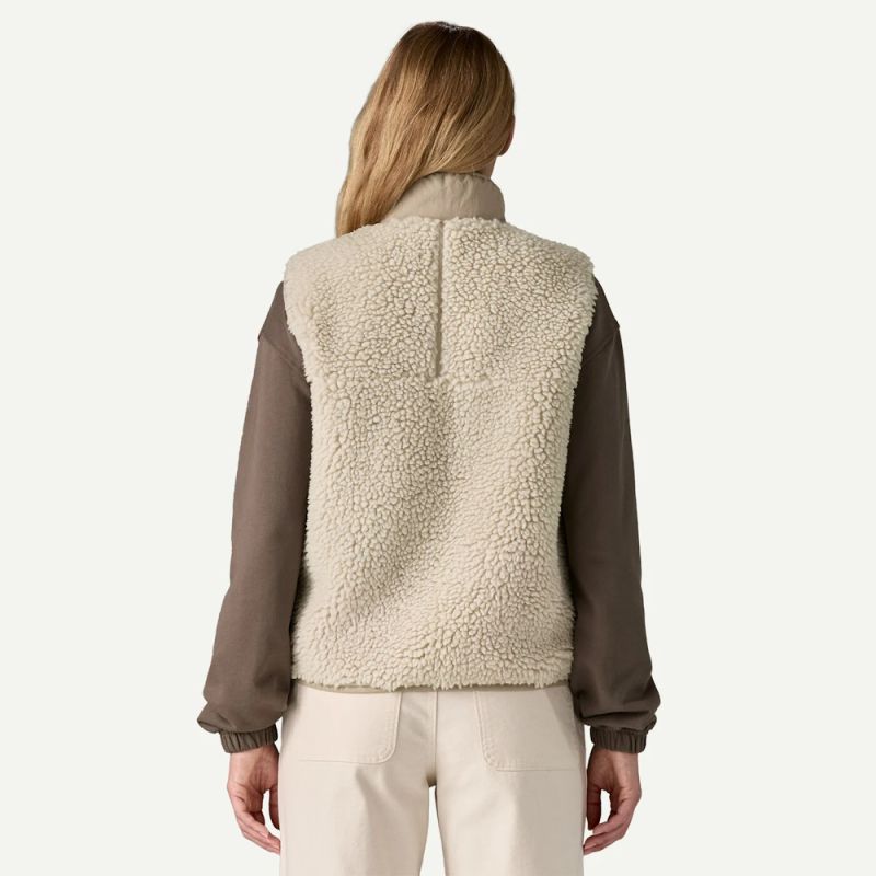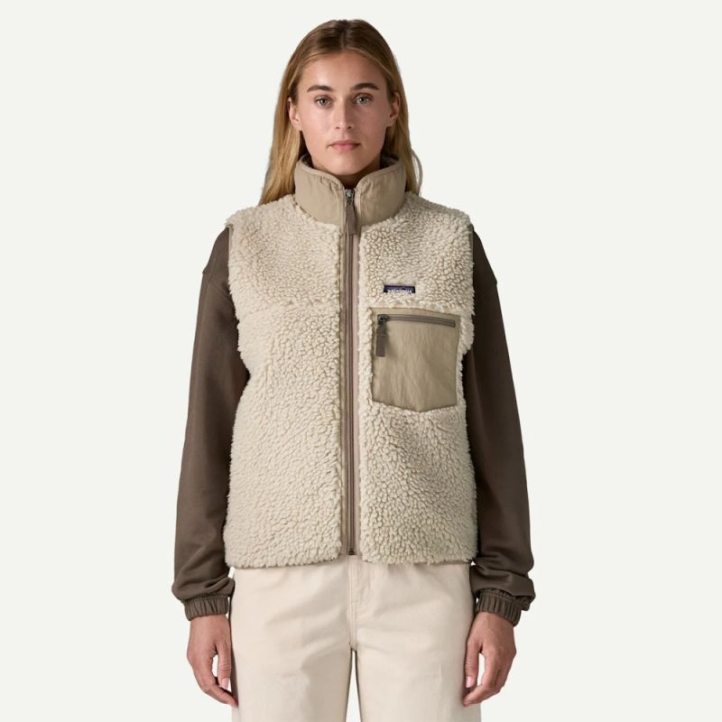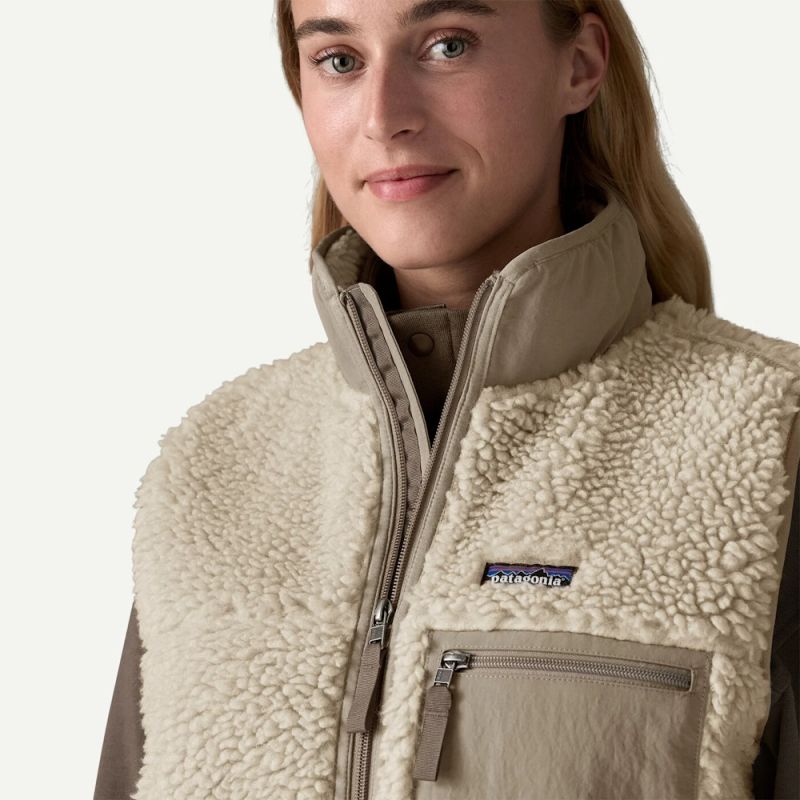 La veste polaire femme Classic Retro-X Fleece Vest est une veste sans manches douce, chaude et coupe-vent en polaire imitation mouton de 1,25 cm d’épaisseur 100% polyester recyclé. Doublure en taffetas 100% polyester recyclé avec apprêt déperlant durable (DWR) fabriqué sans ajout délibéré de PFAS. Elle possède un zip frontal sur toute la longueur, avec doublure flottante en taffetas, rabat coupe-vent intérieur et coupe décontractée. Poche poitrine zippée, côté gauche et deux poches chauffe-mains zippées avec doublure en tricot brossé 100% polyester recyclé. Le col montant est doublé en polaire, extérieur du col et liseré en nylon texturé durable NetPlus 100% recyclé post-consommation