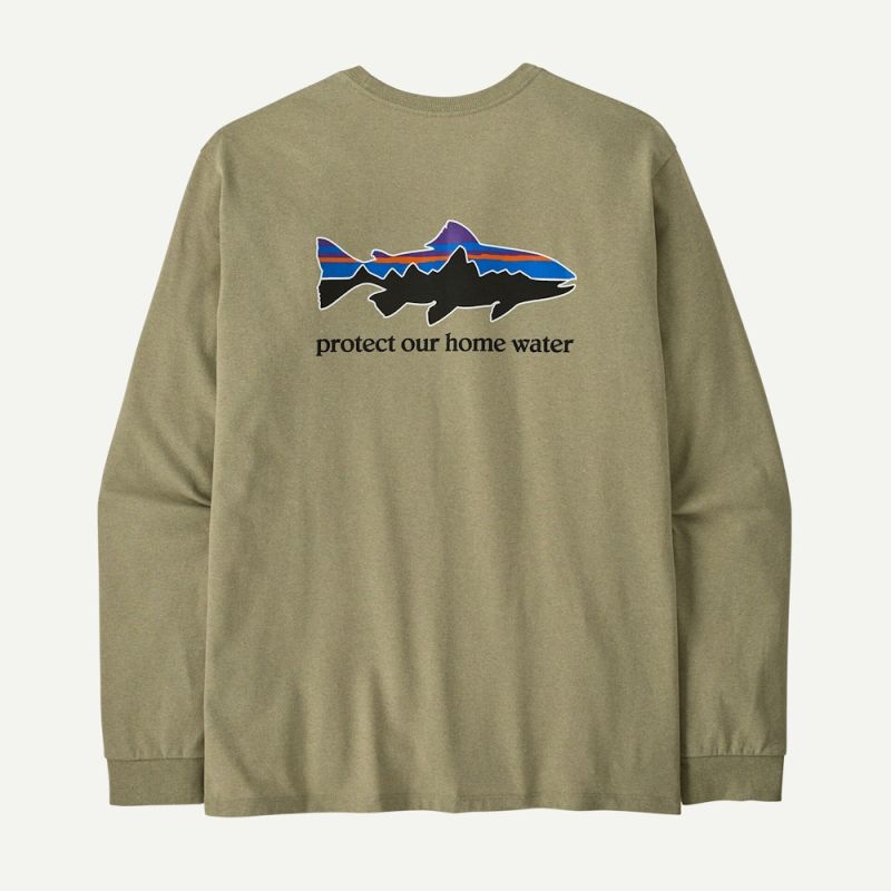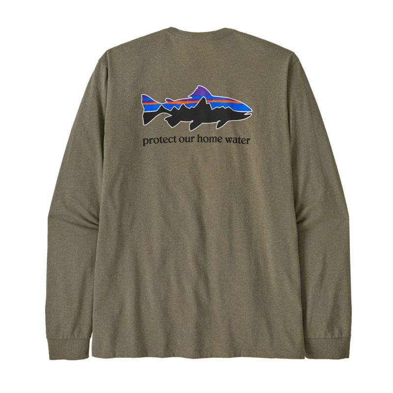 Le tee-shirt Patagonia Home Water Trout Responsibili-Tee est fabriqué en matériaux 100% recyclées, et bénéficie ainsi d’une très faible empreinte carbone. Tee-shirt ras-du-cou à manches longues coupe classique. Encolure à bords côtelés et coutures étanchées aux épaules pour plus de confort et une meilleure tenue. Motif sérigraphié avec des encres sans PVC ni phtalates.