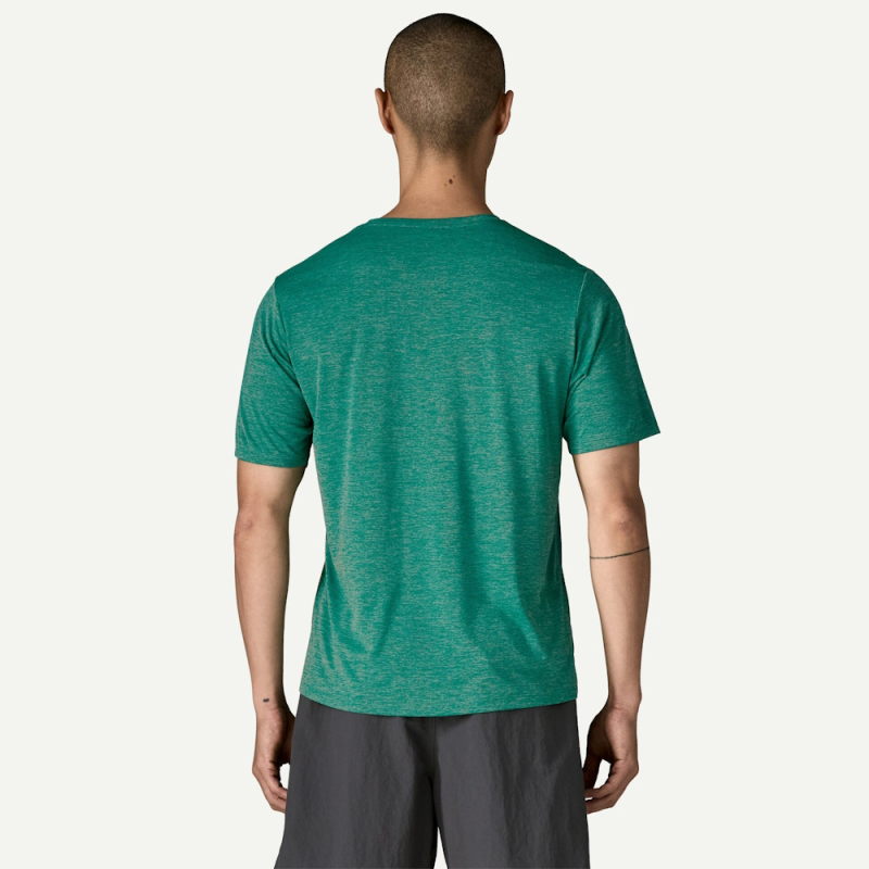 Le Capilene Cool Daily Shirt Patagonia possède des manches montées pour une plus grande liberté de mouvement et un ajustement optimal. Il est confectionné dans une matière stretch- jersey 100% polyester recyclé - offrant un excellent confort avec traitement anti-odeurs HeiQ Mint pour une fraîcheur longue durée. la matière évacue rapidement la transpiration et sèche rapidement.
