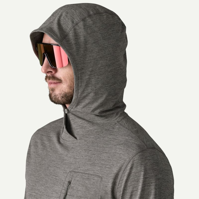 Le tee shirt Patagonia M's Capilene Cool Sun Hoody est doté d'une grande capuche à bouton conçue pour être portée sur une casquette et offrir une protection supplémentaire contre le soleil. Il est confectionné dans une matière légère à séchage rapide qui évacue efficacement la transpiration, avec intérieur texturé qui écarte le tissu de la peau pour une meilleure circulation de l’air.